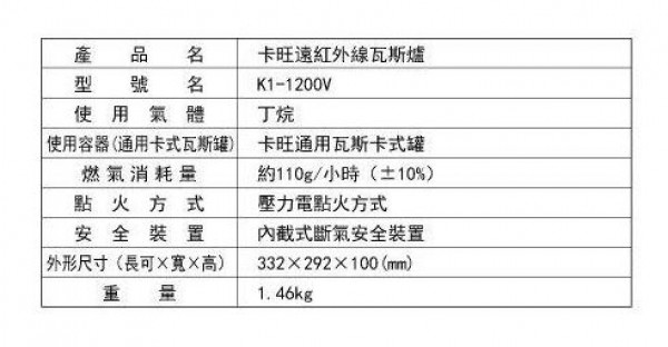 特價品 卡旺遠紅外線瓦斯爐 ~攜帶方便146A031-46