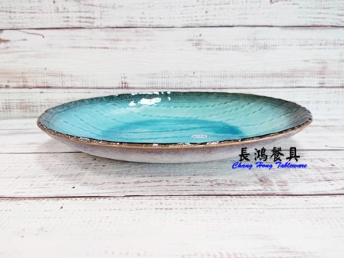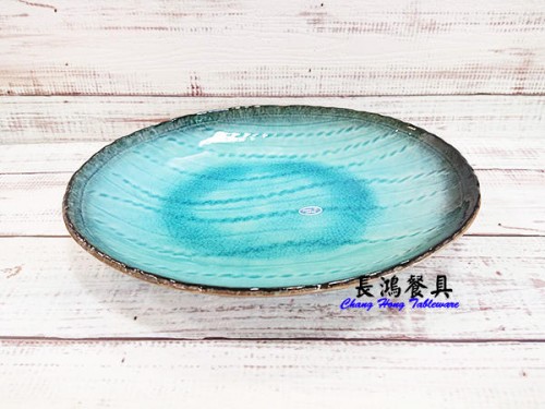日本製 9.5長圓皿 流水貫入(藍) 00501323