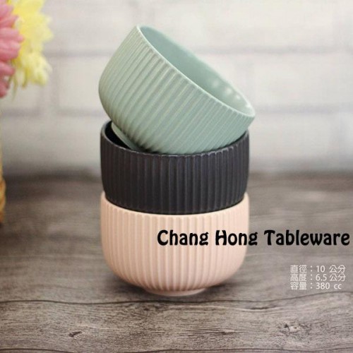 無光系列 白/粉/綠/灰 3.8"消光面條紋湯碗 221W-51-3.8W