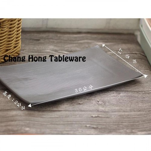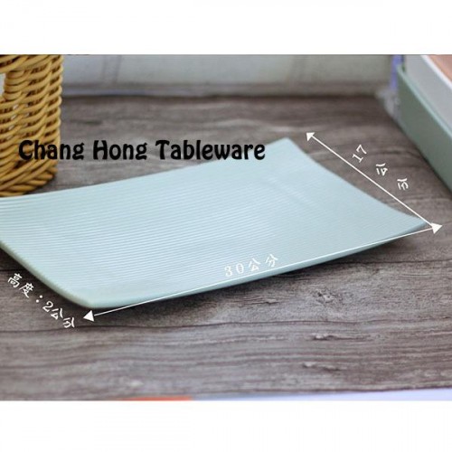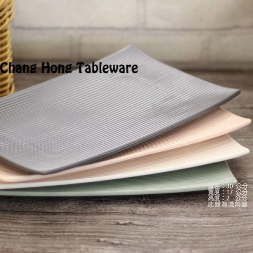 無光系列 白/粉/綠/灰 12"長方消光面條紋盤0250038-D97A-12W