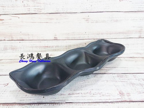 陶面 黑 三格豆瓣碟 051EXJA284