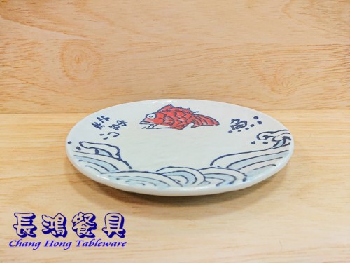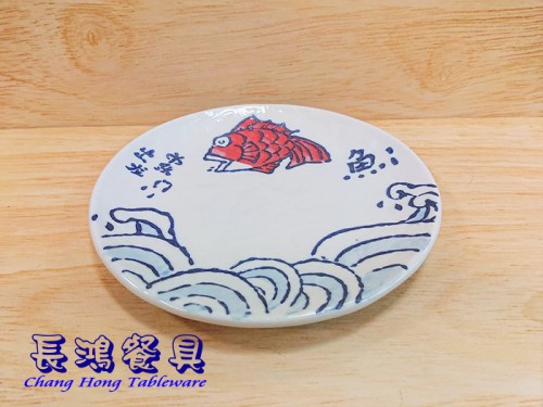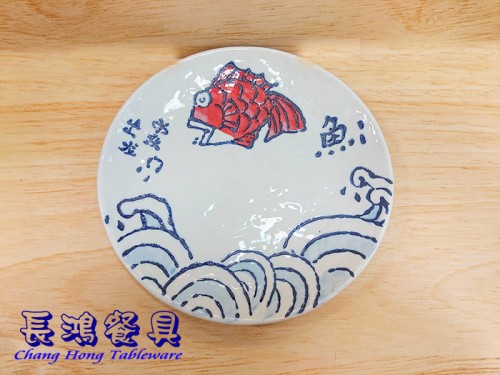 濤紅魚8"石紋淺式盤 011MF801