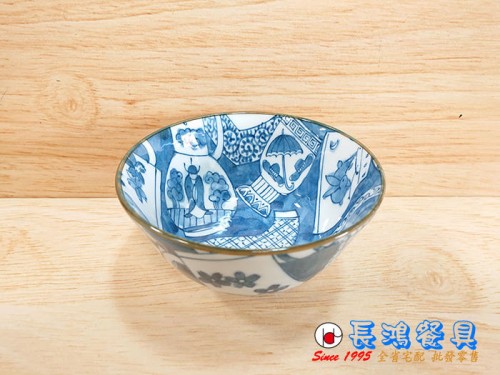 日本製5"飯碗 藍山水 07800542