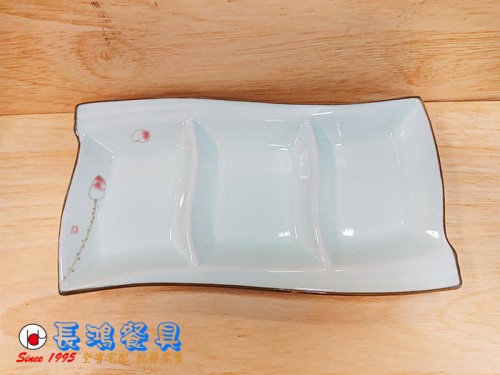 隆青瓷荷系列 12"長三格鳳尾皿 00501710