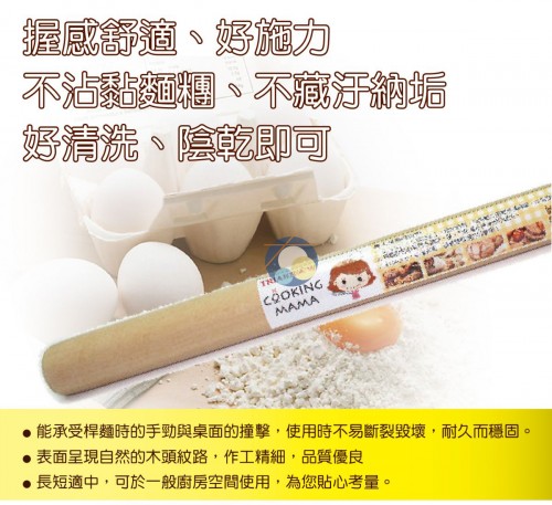 桿麵棍表面呈現自然的木頭紋路,作工精細,品質優良;棍子長短適中,可於一般廚房空間使用,為您貼心考量。