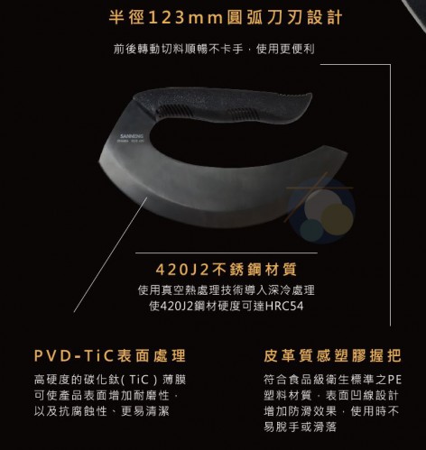 三能 食材料理刀(鍍鈦-黑色) 022SN-4865
