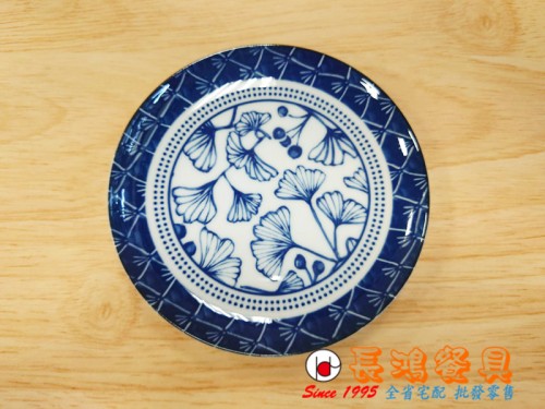 日本製 6丸皿藍底藍花 0051728
