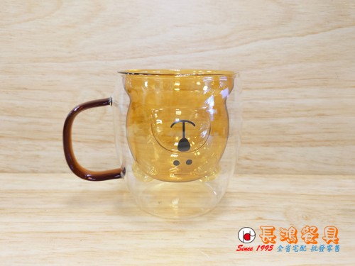 380CC 焦糖棕雙層玻璃杯 幸福熊 237H3099-17