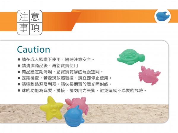 6. 球的功能為玩耍.拋接,請勿用力丟擲,避免造成不必要的危險。