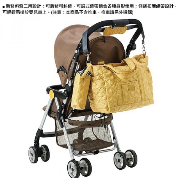 ●肩背斜背兩用設計:可肩背可斜背兩用背帶,與可調式背帶,適合各種身形使用,此外,媽媽袋側邊扣環繩帶設計,可輕鬆吊掛於嬰兒車上