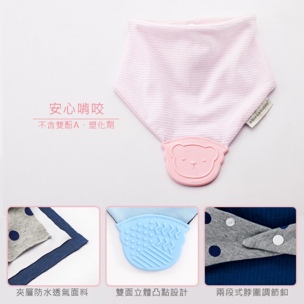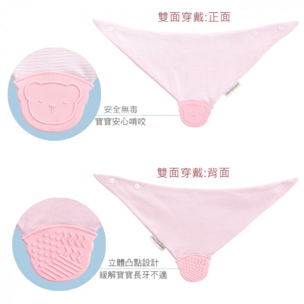 ■ 結合固齒器與三角領巾,滿足寶寶不同需求,緩解長牙不適。