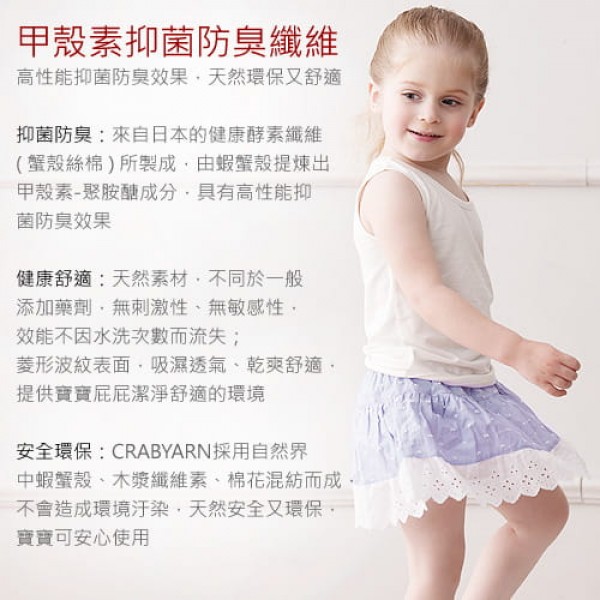「甲殼素抑菌防臭纖維」材質特點:高性能抑菌防臭效果,天然環保又舒適