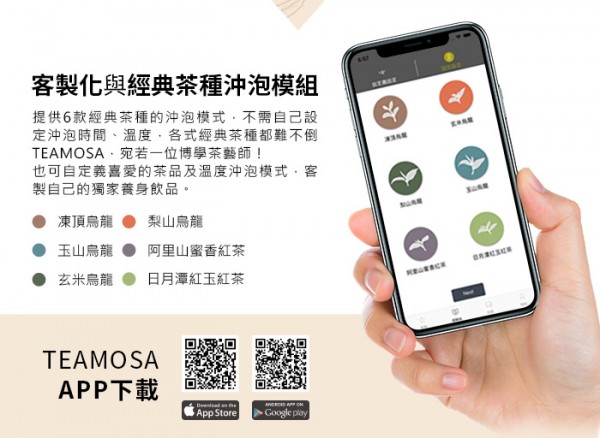 • 客製化與內建6款經典茶種模組