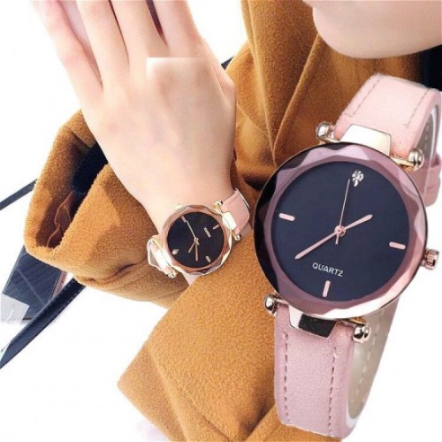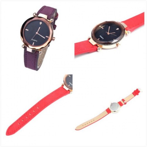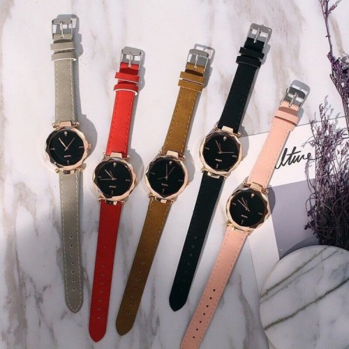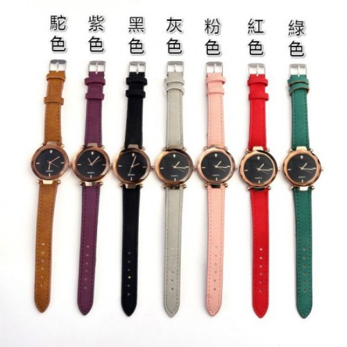 新款 歐美時尚 水滴鑽 菱形切割鏡面 磨砂皮 優雅簡約女錶 情人送禮 交換禮物