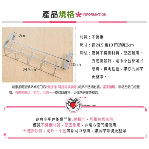 多用途門後5連掛勾