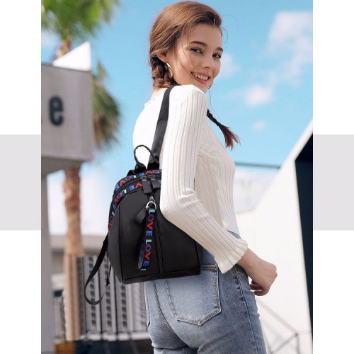 撞色字母後背包