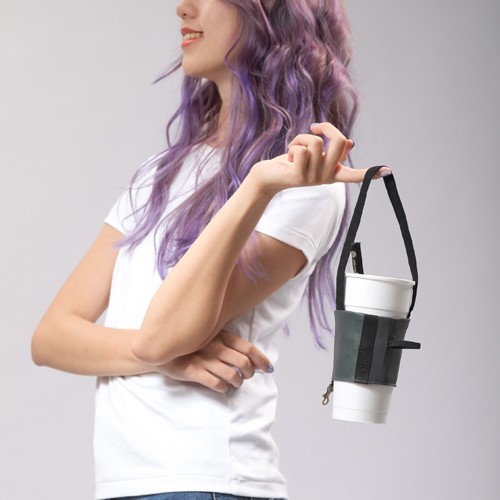 ‧不使用時摺疊可隨身掛於包包上,上寬下窄的剪裁製作,使杯套能更服貼杯身。