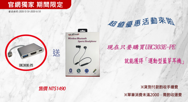 超值優惠活動 優惠期間:2020/3/16~20204/16 只要購買UHC303E-PE,即可獲得【運動型藍芽耳機】 要買要快喔~~~ 數量有限,賣完就沒有囉~~ ...