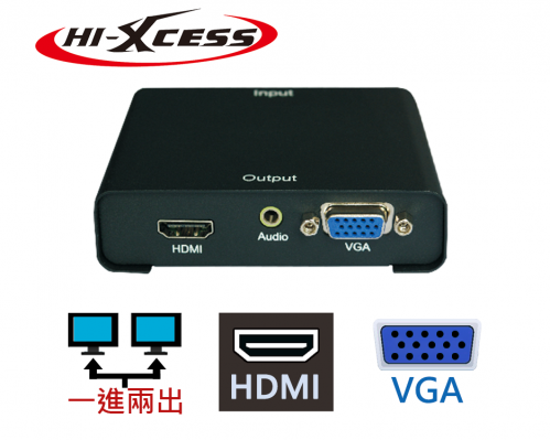 可將單一HDMI輸出至兩個螢幕與音源,並將其中一個轉成VGA類比訊號,同時解決介面相容問題。