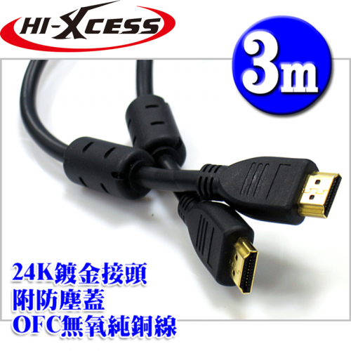 HDMI 超高畫質傳輸線 (3米/30awg)(附防塵塞)(HDMI3030)