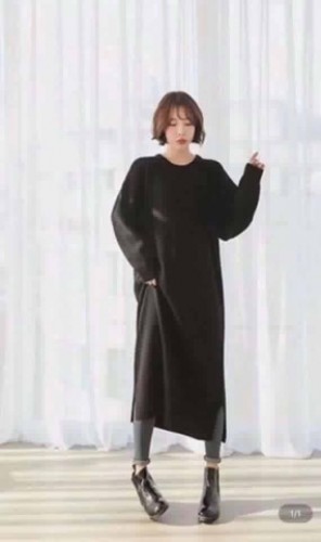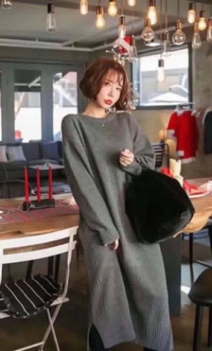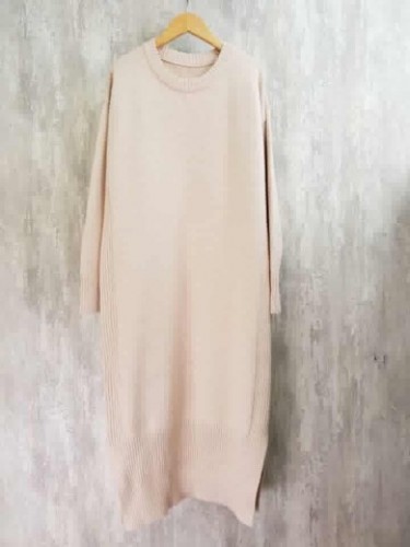 3098側邊坑紋下擺開衩針織連身裙