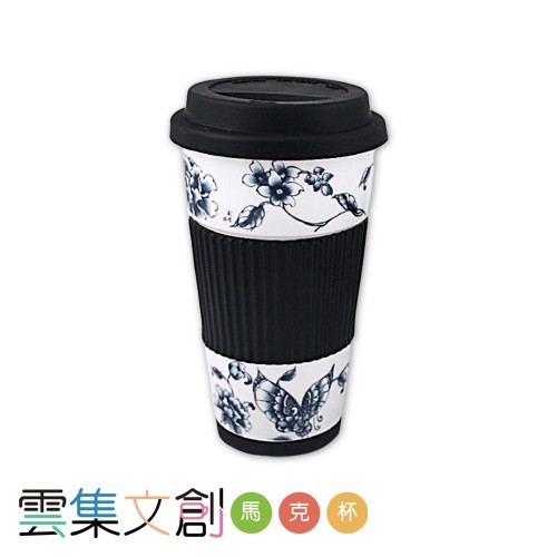 青花舞蝶紳士隨手杯+硅膠蓋(強化瓷)