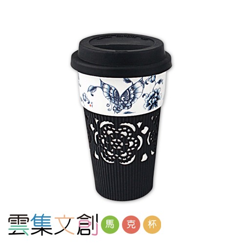 MUGBF-06CB-A 青花舞蝶風雅隨手杯+硅膠蓋+窗花隔熱套