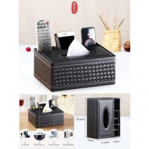 經典皮革黑格紋面紙收納盒