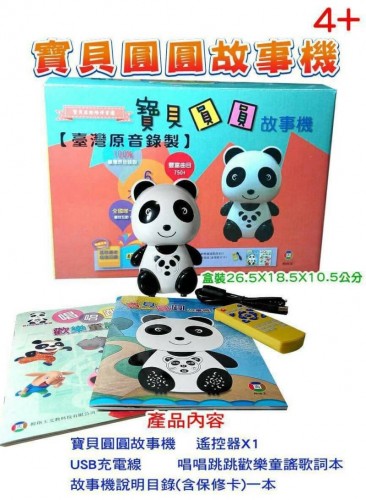 ◆商品規格:寶貝圓圓故事機、遙控器、USB充電線、唱唱跳跳歡樂童謠歌本、故事機說明目錄。