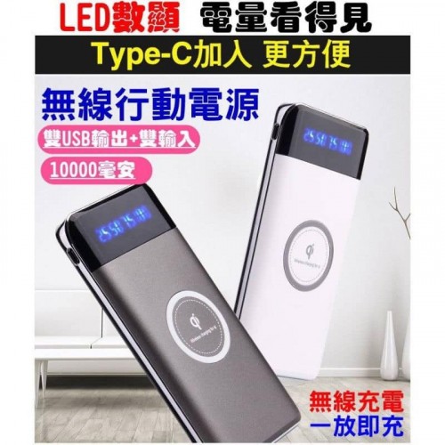 行動電源 LED數字 10000毫安 QI 行動電源