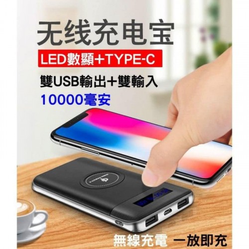 LED數字顯示qi充電寶無線行動電源10000M