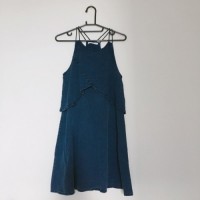 MANGO 深藍色細肩挖背連身裙
