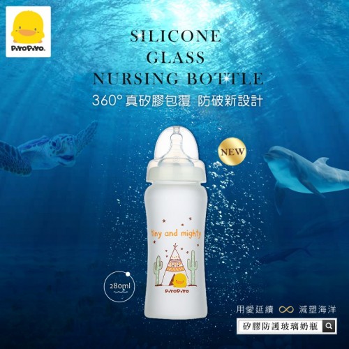黃色小鴨PiyoPiyo-360°矽膠防護寬口徑玻璃奶瓶280ml