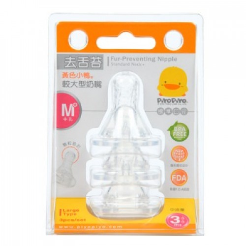 黃色小鴨PiyoPiyo-去舌苔標準口徑奶嘴十字型M孔(3入)