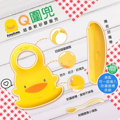 黃色小鴨Piyo Piyo-Q圍兜(附雙色學習長湯匙乙入)