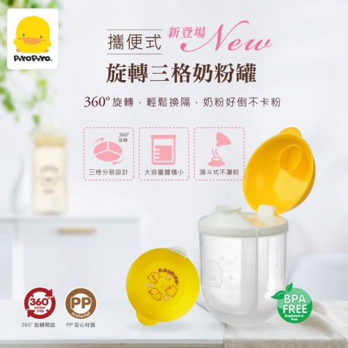 黃色小鴨PiyoPiyo- 便攜式 旋轉三格奶粉罐