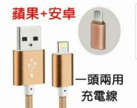 前所未見一頭兩用充電線(安卓 蘋果共用)一插即充 双用資料傳輸及充電二合一高密度尼龍編織 不打結
