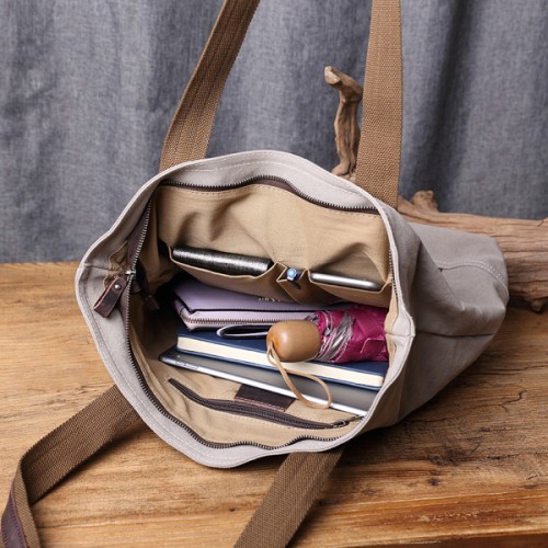 【Solomon 原創設計皮件】機能帆布肩背包 環保購物袋 皮格帆布手提袋書包 大容量耐用