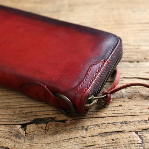 【Solomon 原創設計皮件】植鞣革漸層復古長夾 全真皮拉鍊長夾 有拉鍊零錢袋