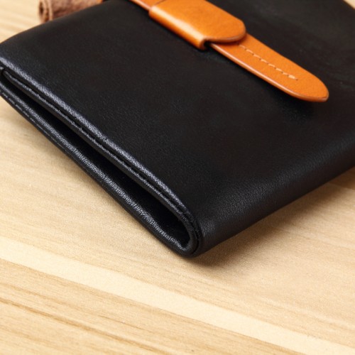 【Solomon 原創設計皮件】真皮雙色短夾 抽帶式直式短夾 中夾