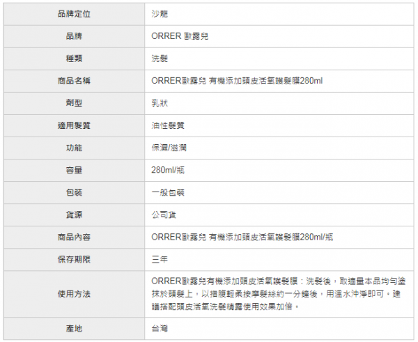 歐露兒ORRER頭皮活氧護髮膜-280mL