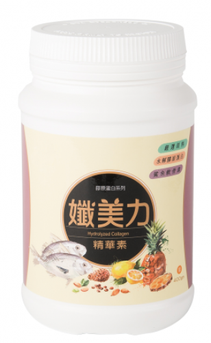 成份:鳳梨果汁粉(砂糖、麥芽糊精、鳳梨濃縮果汁、檸檬酸、檸檬酸鈉、香料、蘋果酸、β胡蘿蔔素)、水解膠原蛋白、山藥、燕麥纖維、葡萄糖胺鹽酸鹽、檸檬酸鈣、鯊魚軟骨素、鳳梨酵素、甲基硫酸基甲烷(MSM)。